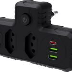 Extensão Tomada com 3 Tomadas e 3 USB (Preto)